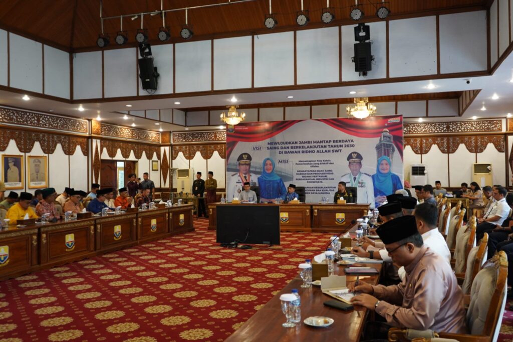 Ganyang News- Jambi (Diskominfo Provinsi Jambi) – Gubernur Jambi Dr. H. Al Haris, S.Sos, MH berkomitmen untuk meningkatkan kinerja ekspor Provinsi Jambi melalui sinergi dan kalaborasi bersama seluruh stekholder yang ada di provinsi Jambi. Komitmen tersebut disampaikannya saat memimpin langsung Rapat Koordinasi (Rakor) Peningkatan Kinerja Ekspor di Provinsi Jambi, bertempat di Auditorium Rumah Dinas Gubernur Jambi, Kamis (26/06/2025).