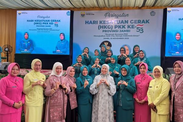 GANYANG NEWS, JAMBI – Sekretaris Daerah Provinsi Jambi, Dr. H. Sudirman, SH, MH, resmi mengukuhkan Hj. Hesti Haris sebagai Bunda Literasi Provinsi Jambi berdasarkan Keputusan Gubernur Jambi Nomor 1049/KEP.GUB/DPAD/2025 yang ditetapkan pada 17 November 2025. Pengukuhan tersebut dilaksanakan bersamaan dengan puncak peringatan Hari Kesatuan Gerak (HKG) PKK ke-53 Provinsi Jambi yang berlangsung di Ev Garden Kota Jambi, Selasa (25/11/2025) pagi. Pemerintah Provinsi…