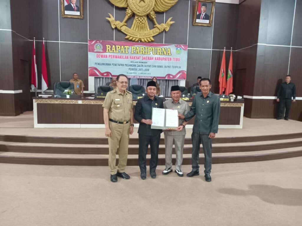 dan Wakil Bupati Tebo, Aspan-Wartono yang telah menerima hasil Pilkada serentak 2024.