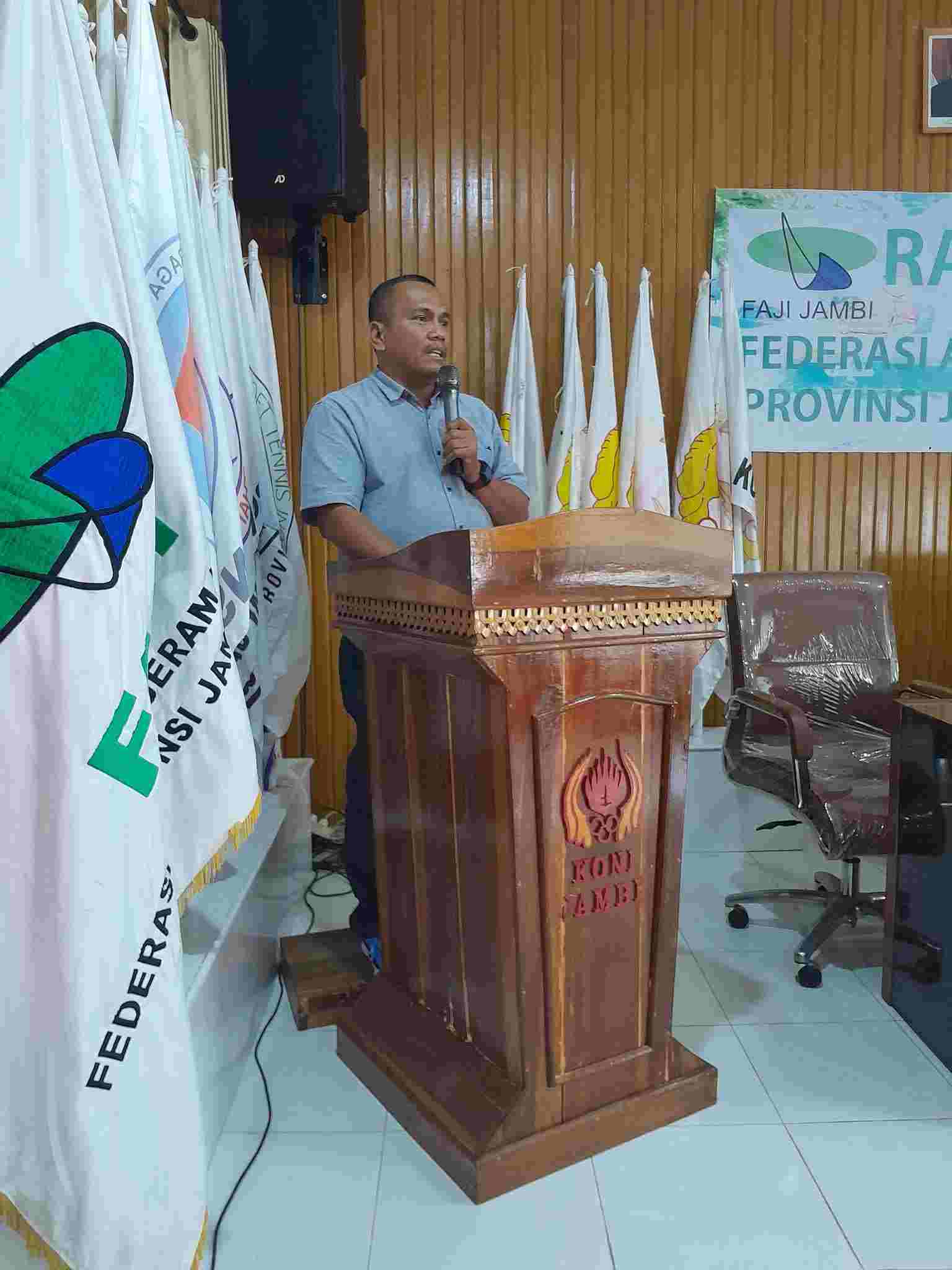 Dalam sambutannya, Ketua FAJI Jambi Ahmad Khoiri menyampaikan bahwa tema “FAJI Jambi Tangguh, FAJI Jambi Juara” bukan sekadar slogan, tetapi menjadi semangat untuk membangun mental juang para atlet dan pengurus di seluruh kabupaten/kota.
