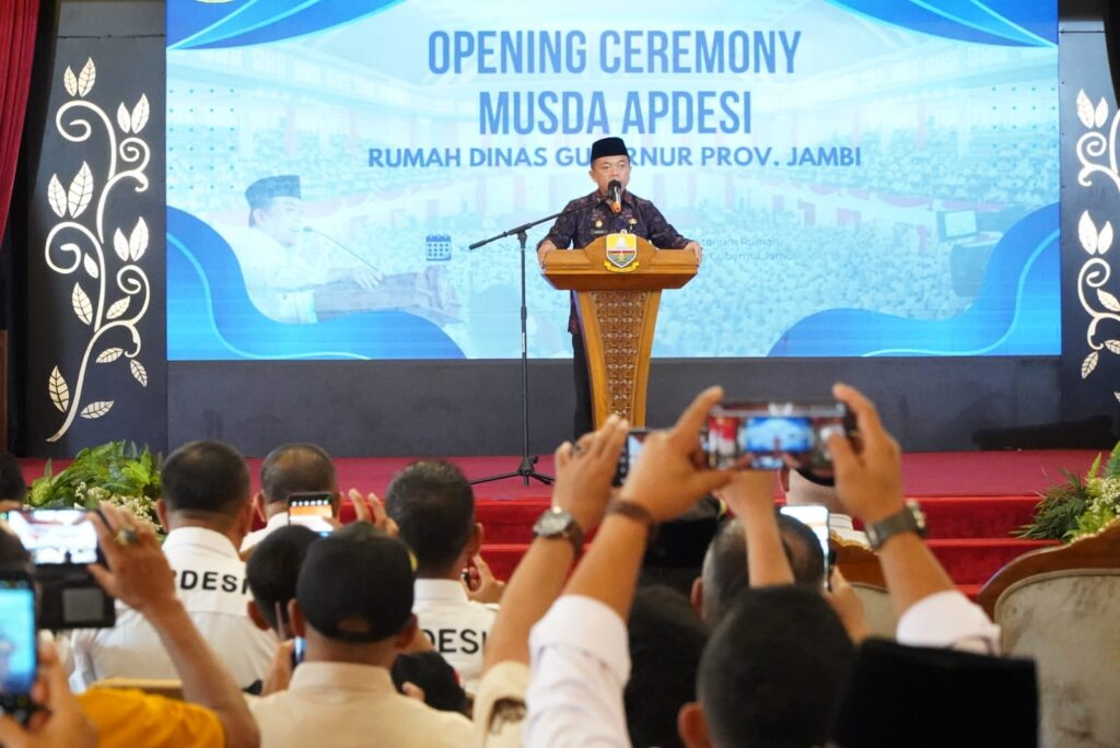 Ganyang News- Jambi (Diskominfo Provinsi Jambi) – Gubernur Jambi Dr. H. Al Haris, S.Sos, MH mengajak kepala desa yang tergabung dalam Asosiasi Pemerintah Desa Seluruh Indonesia (DPD APDESI) untuk berperan dalam menyukseskan berbagai program pembangunan mendukung program Asta Cita Presiden Republik Indonesia Prabowo Subianto dan Wakil Presiden Republik Indonesia Gibran Rakabuming Raka. Diantaranya program makan bergizi, kemudian program ketahanan pangan dalam mendukung ketersediaan pangan nasional hingga kedaerah, termasuk penurunan angka kemiskinan, stunting dan pemberdayaan UKM serta pembangunan perdesaan. Ajakan tersebut disampaikanya saat membuka Musda Pengurus Asosiasi Pemerintah Desa Seluruh Indonesia (DPD APDESI) Provinsi Jambi, Opening Ceremony Provinsi Jambi tahun 2025, bertempat di Auditorium Rumah Dinas Gubernur Jambi, Kamis (24/04/2025).