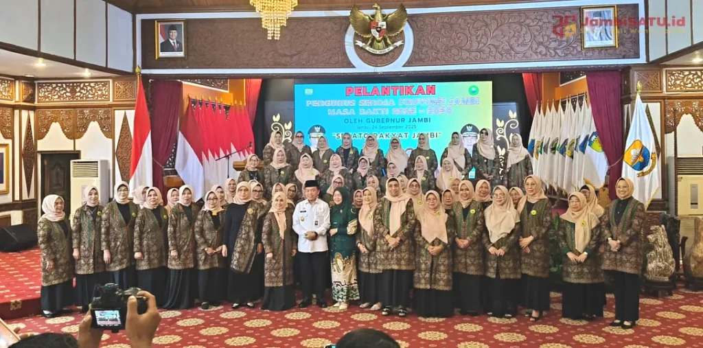 GANYANG NEWS, JAMBI – Gubernur Jambi, Al Haris menghadiri pelantikan Dewan Pimpinan Provinsi (DPP) Seroja Provinsi Jambi periode 2025–2030, Rabu (24/9/2025). Acara berlangsung di Auditorium Rumah Dinas Gubernur Jambi dengan dihadiri jajaran Forkopimda, para kepala OPD, dan tokoh perempuan Jambi.