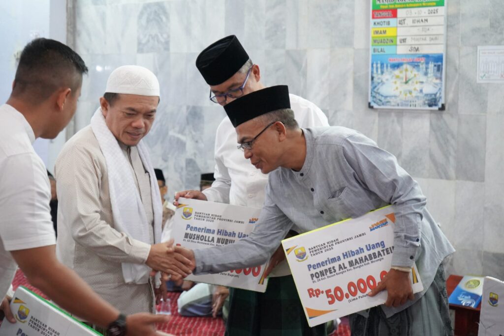 “Mari kita bersama-sama tidak hanya fokus pada pembangunan fisik masjid, tetapi juga memastikan bahwa masjid tersebut digunakan tempat ibadah dan kegiatan keagamaan. Mengadakan kegiatan ibadah seperti shalat berjama’ah, pengajian, dan ceramah keagamaan. Mengoptimalkan fungsi masjid sebagai pusat kegiatan keagamaan dan sosial, serta sebagai tempat untuk meningkatkan kesadaran dan pengetahuan agama,” tegas Gubernur Al Haris.
