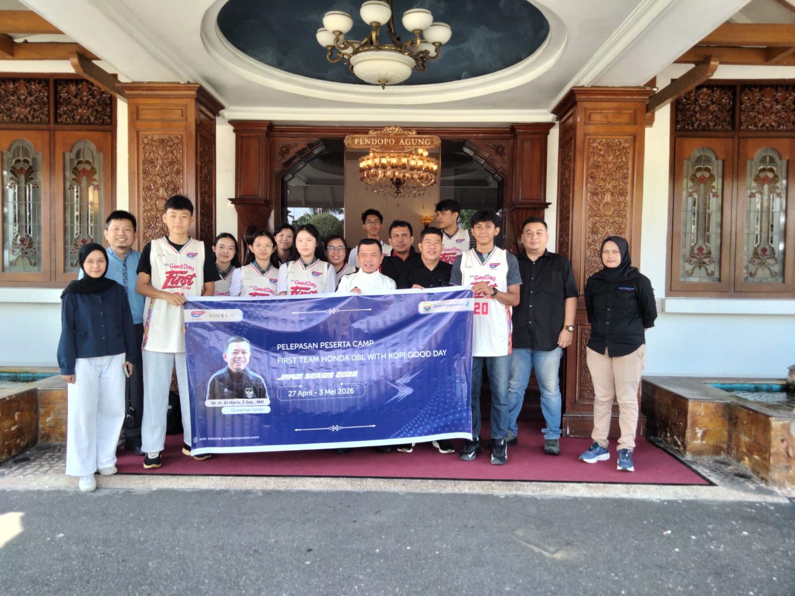 GANYANG.INFO, JAMBI – Tim basket pelajar Jambi resmi dilepas untuk mengikuti First Team Training Camp DBL Champion Jambi Independent. Kegiatan pelepasan tersebut berlangsung di Ruang Pendopo Agung Rumah Dinas Gubernur Jambi, Senin (20/4/2026) pagi.