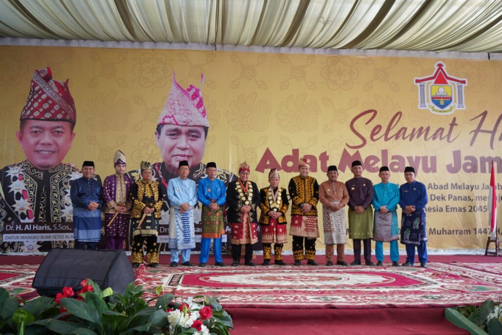 Ganyang News- Jambi (Diskominfo Provinsi Jambi) – Gubernur Jambi yang bergelar Datuk Mangku Bumi Setio Alam Dr. H. Al Haris, S.Sos, MH mengemukakan, Pemangku adat Melayu Jambi memiliki peran penting sebagai mitra Pemerintah Provinsi Jambi dalam Pembangunan, menjaga dan melestarikan nilai-nilai budaya Melayu Jambi, juga sebagai pengayom ditengah masyarakat. Hal tersebut dikemukakan Gubernur saat menghadiri Hari Puncak Lembaga Adat Melayu (LAM) Jambi Ke-747 Provinsi Jambi, bertempat di EV. Garden Kota Jambi, Jum’at (27/06/2025).