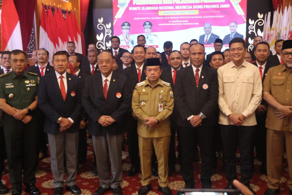 Ganyang News- Jambi (Diskominfo Provinsi Jambi) – Gubernur Jambi, Dr. H. Al Haris, S.Sos., M.H., memproyeksikan Provinsi Jambi bersama Sumatera Barat menjadi tuan rumah Pekan Olahraga Nasional (PON) tahun 2032 mendatang. Menurutnya, langkah strategis ini bukan hanya sekadar penyelenggaraan ajang olahraga, tetapi juga momentum untuk memperkuat citra daerah di tingkat nasional, meningkatkan infrastruktur, dan mendorong pertumbuhan ekonomi daerah. Hal tersebut disampaikan Gubernur saat acara Pelantikan Pengurus Komite Olahraga Nasional Indonesia (KONI) Provinsi Jambi periode 2025–2029 di Auditorium Rumah Dinas Gubernur Jambi, Senin (11/08/2025) pagi.