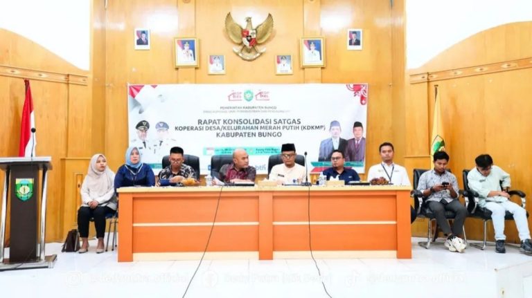GANYANG NEWS, BUNGO – Pemerintah Kabupaten Bungo melalui Dinas Koperasi, UKM, Perindustrian dan Perdagangan menggelar Rapat Konsolidasi Satuan Tugas (Satgas) Koperasi Desa/Kelurahan Merah Putih (KDK MP) pada Kamis (9/10/2025), bertempat di ruang Pola Kantor Bupati Bungo.
