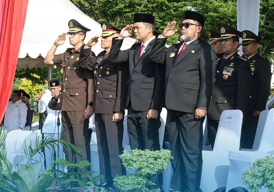 Pjs Gubernur Jambi, H Sudirman (kanan depan) pada upacara Peringati Hari Pahlawan 2024 di lapangan kantor Gubernur Jambi, Kota Jambi, Minggu (10/11/2024). (Foto : Matra/DiskominfoJambi).