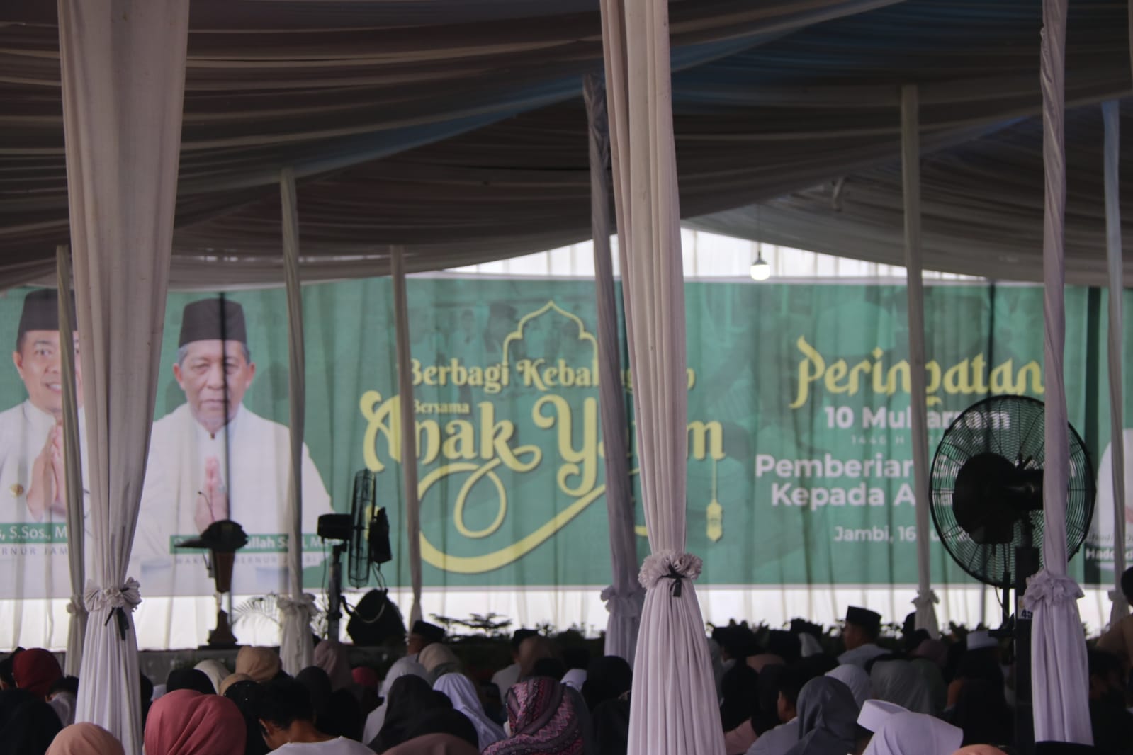 “Pada hari yang mulia ini yaitu 10 Muharram, kami setiap tahunnya semenjak 2021 terus memberikan santunan kepada anak-anak yatim di Jambi. Dan pada tahun ini kami kembali meberikan santunan kepada anak yatim sebanyak 2.185 anak. Santunan ini berasal dari Badan Amil Zakat Nasional (Baznas) Provinsi Jambi untuk 1.185 anak, Bank Jambi 500 Anak, KORPRI 200 anak, dan pengusaha lainnya 300 anak,” ujar Gubernur Al Haris.