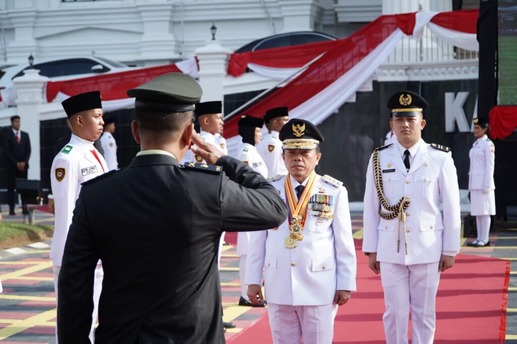 Ganyang News- Jambi (Diskominfo Provinsi Jambi) – Gubernur Jambi Dr. H. Al Haris, S.Sos, MH bertindak sebagai Inspektur Upacara pada peringatan HUT RI ke-80 tahun 2025 yang diselenggarakan di Lapangan Kantor Gubernur Jambi, Minggu (17/08/2025) pagi.