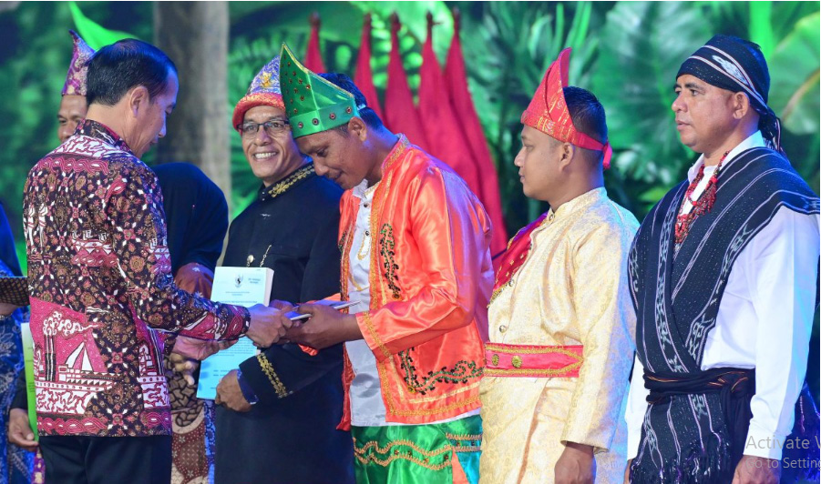 Penyerahan SK pengelolaan lahan perhutanan sosial, TORA dan tanah adat tersbeut dilakukan Presiden Jokowi pada Festival Lingkungan Iklim Kehutanan Energi Baru Terbarukan (LIKE) 2 di Jakarta Convention Center (JCC), Jakarta Jumat (9/8/2024).
