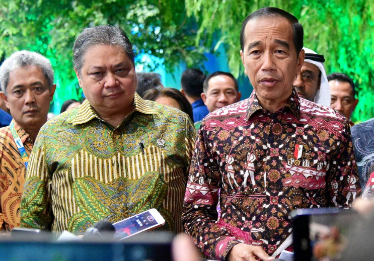 Presiden Jokowi (kanan) didampingi Menko Perekonomian, Erlangga Hartarto (kiri) memberikan keterangan pers pada Festival Lingkungan Iklim Kehutanan Energi Baru Terbarukan (LIKE) 2 di Jakarta Convention Center, Jakarta Jumat (9/8/2024). (Foto : BPMISetpres).
