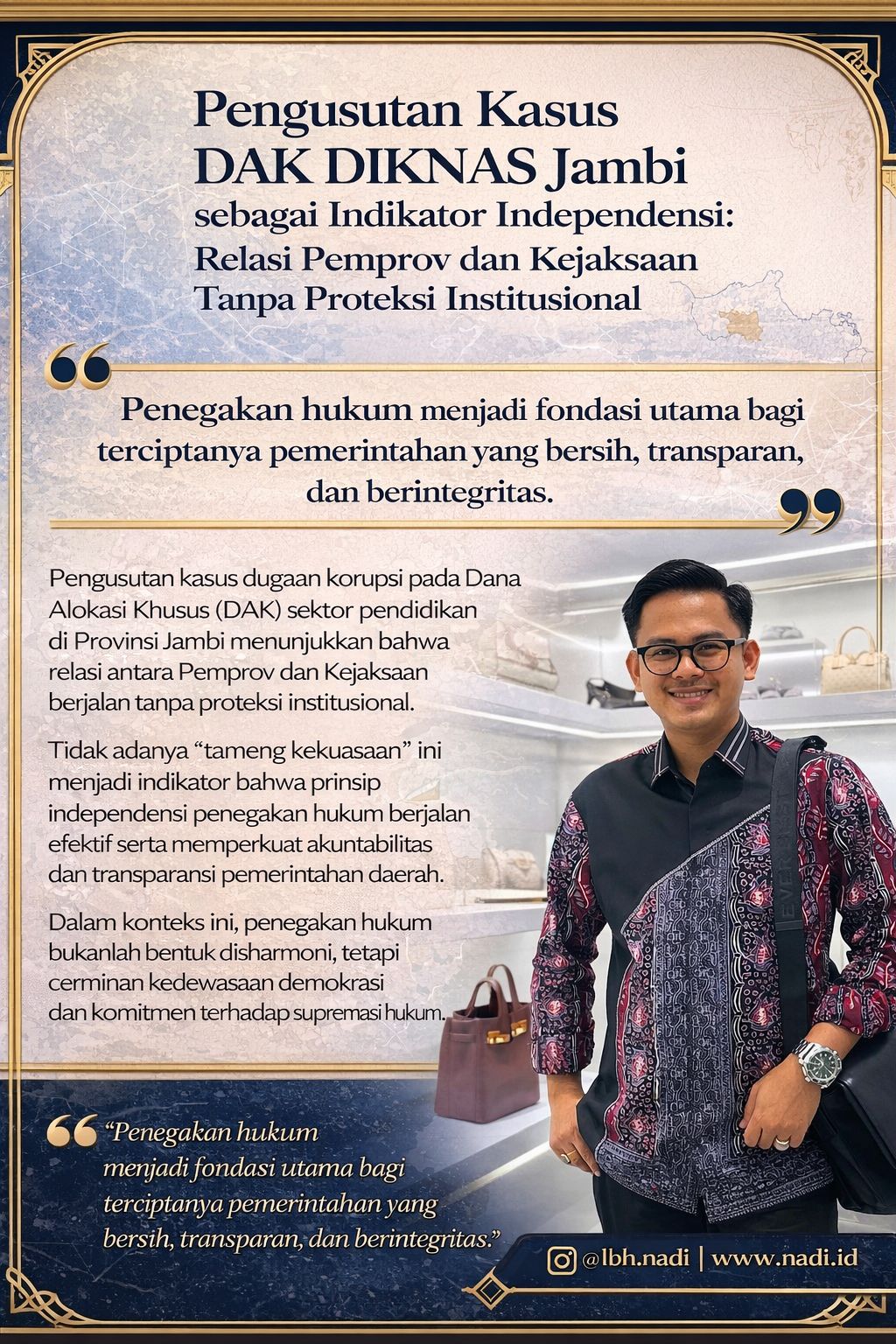 Gerakan Pramuka diharapkan dapat membangun karakter dan moral generasi muda untuk menjadi calon pemimpin dimasa yang akan dating. Sehingga sangat penting bagi generasi saat ini untuk melakukan pembinaan kepad generasi muda. Sebagai KA. Kwarda Gerakan Pramuka Jambi dimasa kepemimpinannya menargetkan mencteka sebanyak 2.805 Pramuka Garuda.