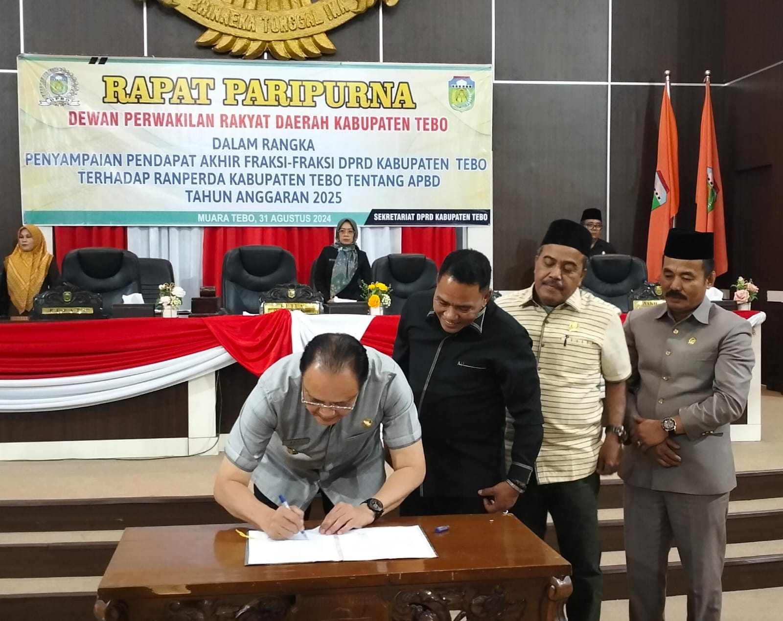 Paripurna juga dihadiri PJ.bupati Tebo varial Adhi putra,sekretaris daerah Tebo teguh arhadi,Dandim 0416 Bute,Kapolres Tebo,para anggota dewan terhormat,para OPD para Kabag para kabid,lembaga vertikal serta tamu undangan lain nya.