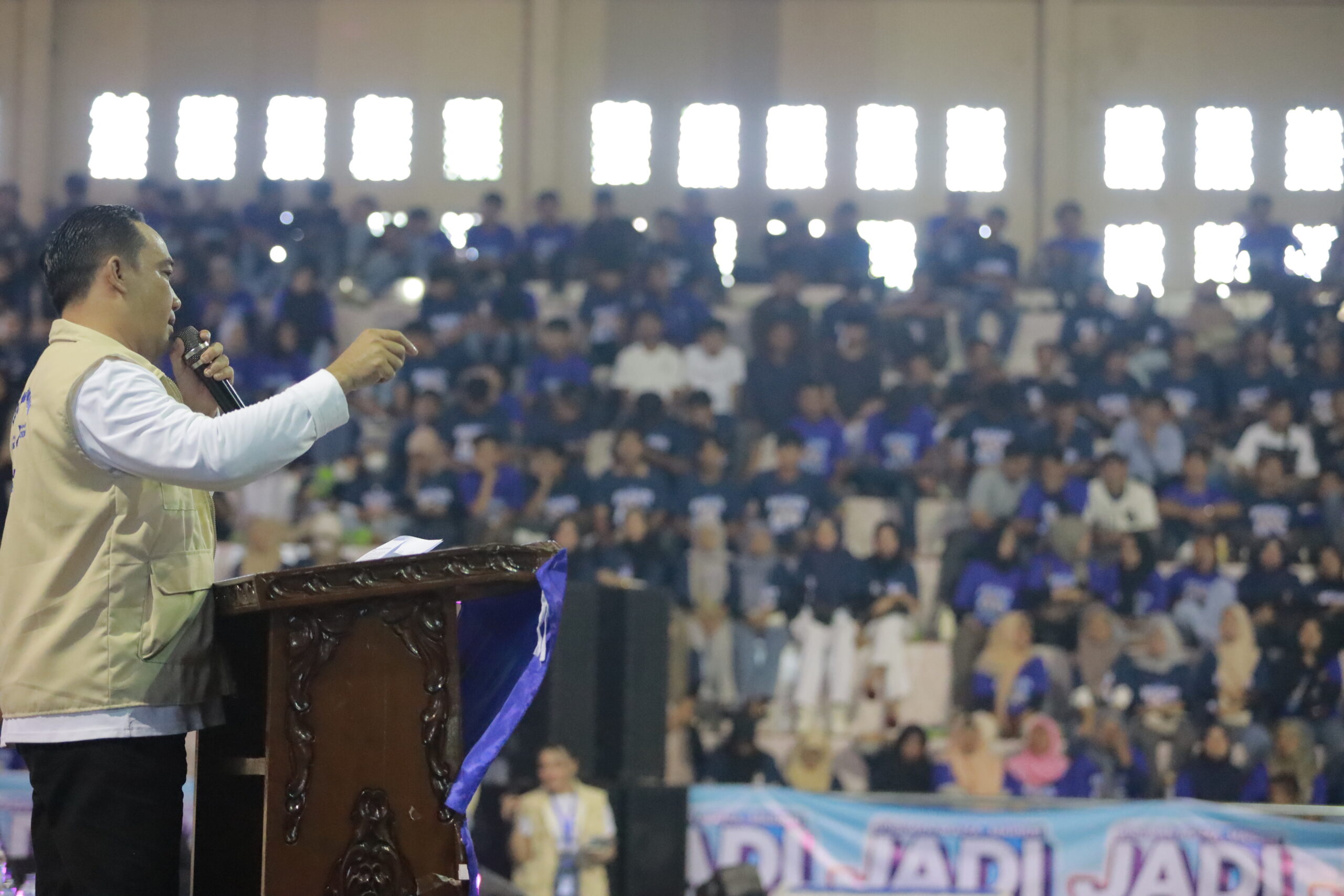 GANYANG NEWS, BUNGO – Deklarasi Akbar Relawan Muda Jumiwan Aguza SM.MM & Maidani.SE yang digelar di Gedung Olahraga (GOR) Eks MTQ Lama kabupaten Bungo provinsi Jambi, Selasa 27 Agustus 2024 berlangsung meriah. Setidaknya 3.000 generasi muda hadir dalam acara prestisius ini.