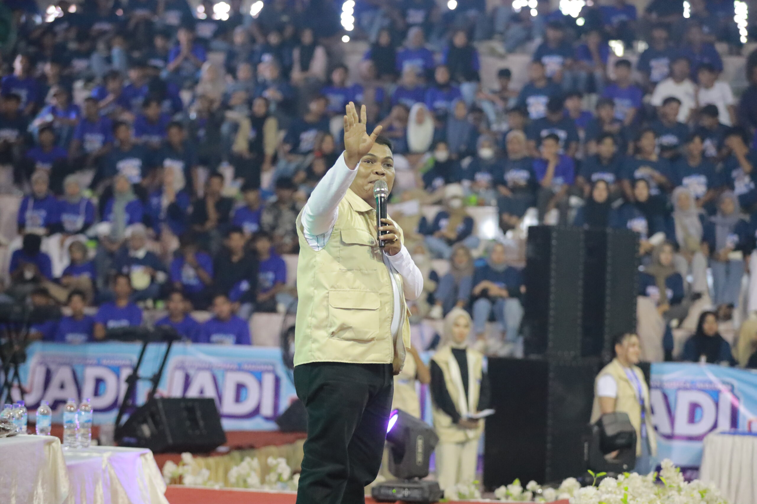 Maidani pun memberikan yel yel yang membara sehingga ribuan Relawan Muda turut mengikuti yel yel dari Maidani.
